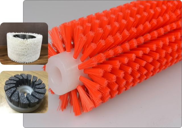 • Made in various shapes and sizes, like Rotary brushes, Flat and Linear brushes,  Disc brushes,  used for tasks such as surface finishing, deburring, cleaning, polishing, and coating.